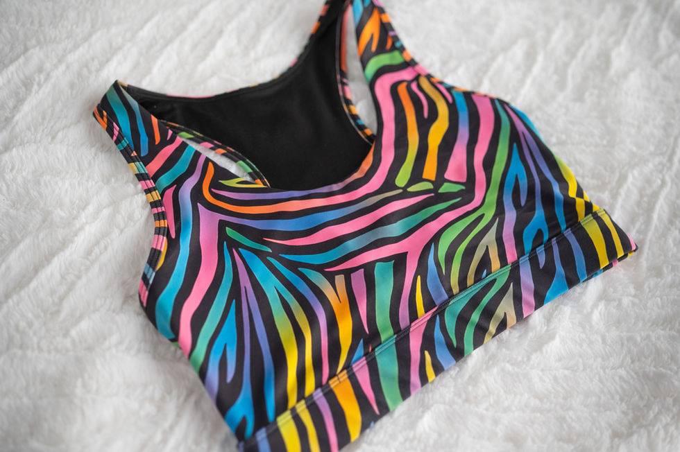Bold, vibrant, and full of fearless energy, the Sisterhood Bra. The Electric Zebra celebrates confidence, individuality, and the power of standing out together. Its striking zebra pattern bursts with electric shades of pink, blue, green, yellow, and orange against a deep black backdrop, creating a look that’s both wild and empowering. Designed to inspire movement and strength, it’s a reminder that confidence shines brightest when it’s bold, colorful, and unapologetically you.